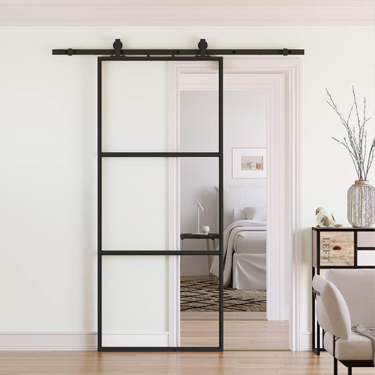 Glass Sliding Barn Door with Hardware Kit & Soft Close Mechanism